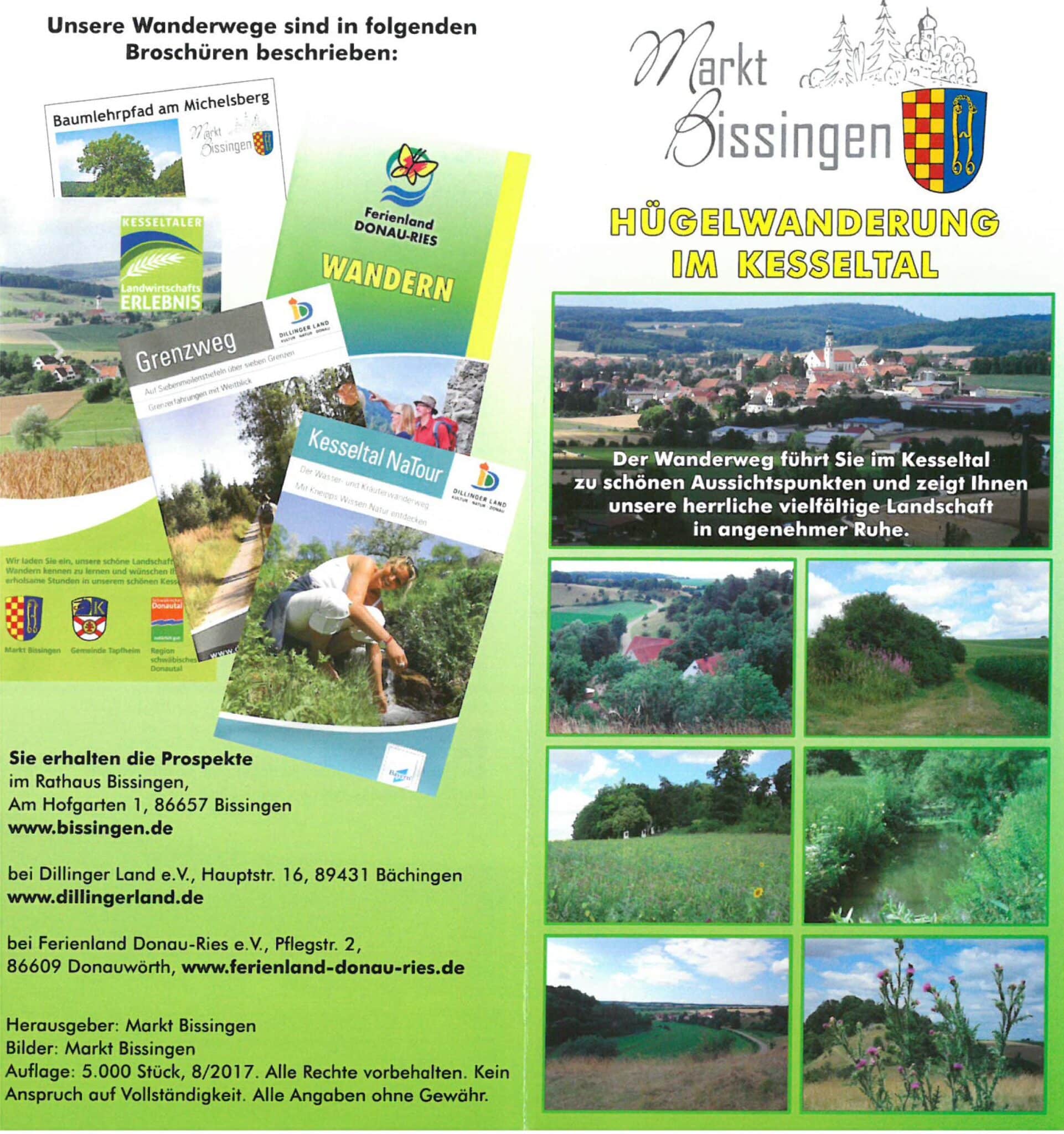 Sind Sie nun neugierig geworden auf das Kesseltal? Haben Sie noch Fragen? Auskünfte erteilt Ihnen gerne die Marktverwaltung Bissingen. Dort erhalten Sie für aktiven Urlaub auch eine Wanderkarte und die Radwanderkarte des Kesseltals. Wer Ruhe und Entspannung sucht, wer stille Rastplätze in Waldlichtungen und auf Wacholderheiden liebt, wer ländliche Gastlichkeit schätzt, wer gerne auf hektisches Treiben und betriebsamen Rummel verzichtet, der findet dies im schönen Kesseltal.