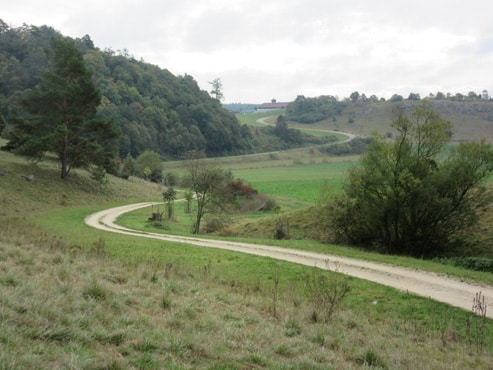 Weiter gehen Sie unterhalb von Fronhofen entlang der Kessel bis zum Ortsende des Dorfes Fronhofen. Nach der Kläranlage laufen Sie wieder entlang der Kessel in Richtung Fuchsberg. Sie gehen an dem Solarfeld vorbei und am Wald entlang zum Ausgangspunkt am Wanderparkplatz an der Kreisstraße Bissingen-Warnhofen zurück.