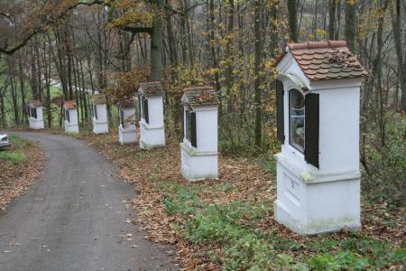 Der schöne gemauerte Kreuzweg mit Bildnissen von Wilhelm Johann Niessen wurde zwischen 1879 und 1882 auf Veranlassung des damaligen Ortspfarrers Schlund errichtet. Er begleitet die Besucher in 14 Stationen zur Pfarrkirche St. Michael.