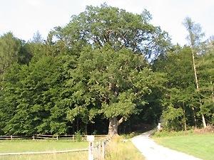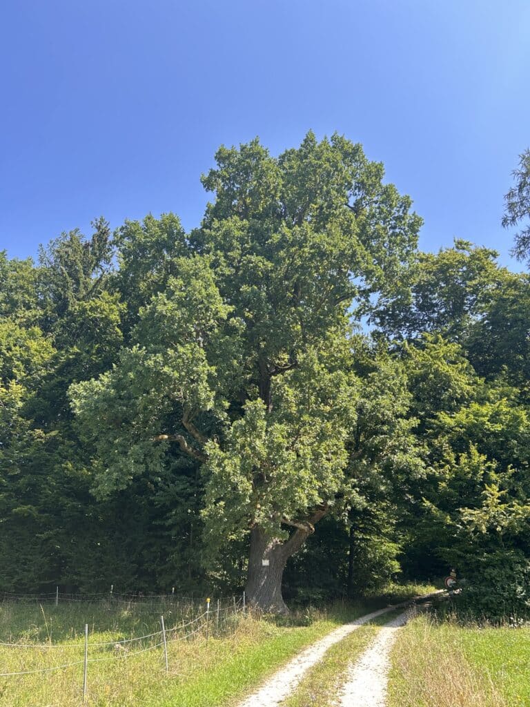 Östlich von Buggenhofen am Waldrand steht eine markante etwa 600 Jahre alte Stieleiche unter Naturschutz.